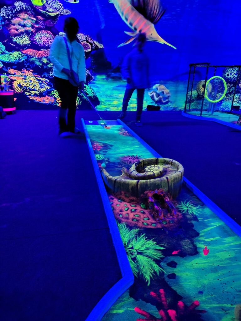 Auch abseits von Paddel, Boot und Wasser wissen die Wickinger, wie man gemeinsam auf Abenteuerfahrt geht: Auch in diesem Jahr führte der Ausflug der Kajakjugend die Gruppe ins 3D-Schwarzlichtminigolf.